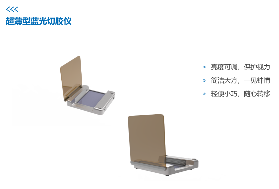 普睿博仪器蓝光切胶仪UV-Cut108 采用全进口LED蓝光激发灯源,寿命长,并创造性地加入了可调节光强度功能,最大程度保证显示条带亮度适中。本产品用于清晰地观察染色凝胶中的核酸,方便切